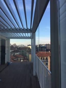 Attico a Milano vista mozzafiato, cosa mancava a questo terrazzo, ma certo la copertura che permetta al cliente di poter vivere a pieno l’area esterna, abbiamo installato un pergola OPERA di PRATIC a tre moduli, preparato ancoraggi a terra, durante la costruzione l’ancoraggio doveva essere estremamente sicuro , siamo all’undicesimo piano li il vento non scherza, con il cliente abbiamo deciso di schermare perimetralmente con tende ombreggianti tutti e tre i moduli, mentre solo un modulo è stato chiuso con vetri SLIDE GLASS per poter usufruire di questo spazio anche nei periodi più freddi.