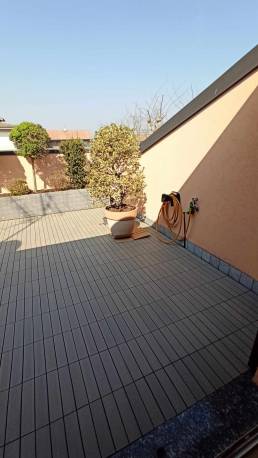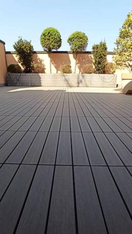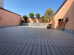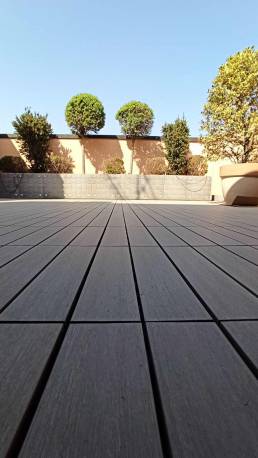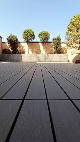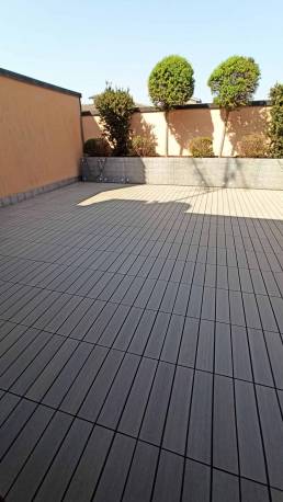 Pavimentazione a quadretto di ULTRASHIELD con sottostruttura in pvc integrata alla quadretta che permette una facile e rapida posa in opera circa 25 mq posati in una mezza giornata. Risultato gradevole e pulito, prodotto che potrebbe posare anche direttamente il cliente,risparmiando i costi di manodopera.