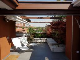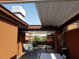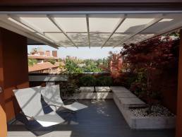 Tenda tecnic pratic con tessuto microforato soltis giovanardi leggerezza linee pulite impacchettamento motorizzato somfy con telecomando possibilità anche manuale.